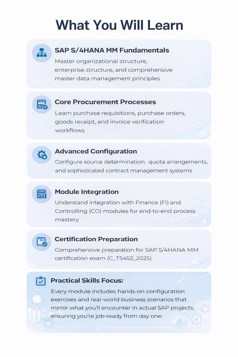 SAP MM S/4 HANA self-paced course, designed for professionals and freshers who want to build strong expertise in SAP Materials Management.
